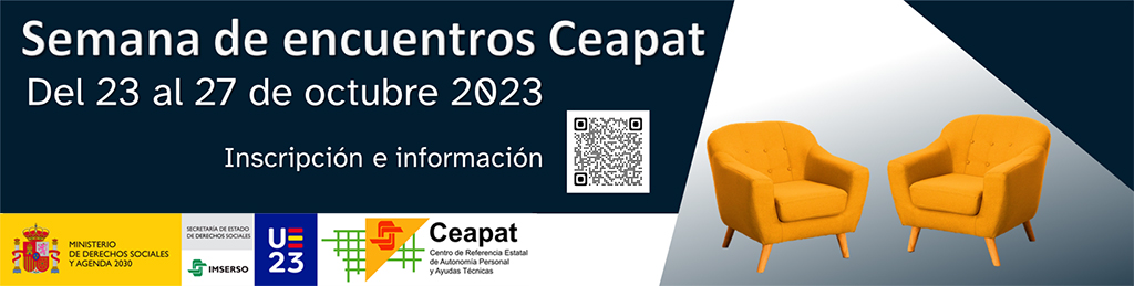 El Centro de Referencia Estatal de Autonomía Personal y Ayudas Técnicas, Ceapat-Imserso, organiza una serie de conversatorios que se celebrarán del 23 al 27 de octubre de 2023. El formato renovado consistirá en conversaciones informales entre profesionales de distintos ámbitos, en torno a un tema. Serán transmitidas en directo y grabadas para su posterior edición y difusión pública (YouTube, redes sociales, podcast, etc.). Las preguntas a los participantes se formularán por escrito, mediante un formulario en línea. Sus respuestas se alojarán, posteriormente, en el Blog del Ceapat. La asistencia presencial será limitada, hasta cubrir aforo, con inscripción previa. Puede encontrar aquí el programa detallado (151 Kb.)