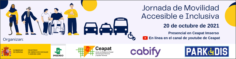 El Centro de Referencia Estatal de Autonomía Personal y Ayudas Técnicas (Ceapat) del Imserso en Madrid, organiza en colaboración con Cabify y Park4dis la Jornada sobre «Movilidad accesible e inclusiva» que se celebrará el 20 de octubre de 2021, de 10:00 a 18:30 horas.